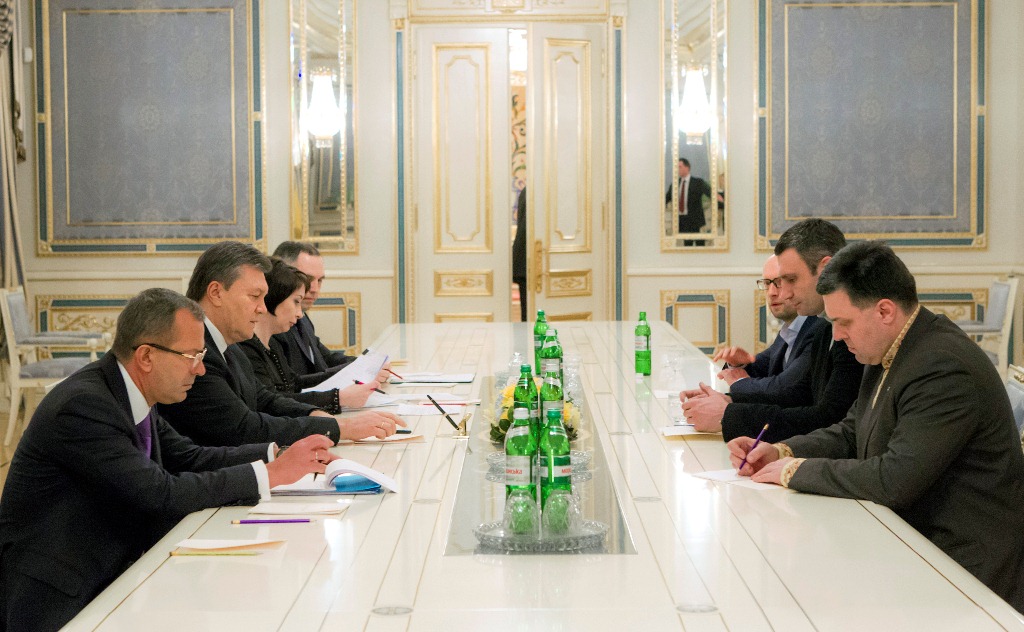Władze i opozycja dochodzą do porozumienia. Zgodnie z ustaleniami, rozpisane zostaną przedterminowe wybory prezydenckie i parlamentarne; może też powstać tymczasowy „rząd techniczny”. Prezydent podpisuje ustawę, likwidującą antydemokratyczne przepisy, ograniczające wolności obywatelskie, a specjalne jednostki milicji Berkut wrócą do koszar. W zamian, opozycja opuszcza okupowane urzędy państwowe i godzi się na to, że w centrum Kijowa pozostanie jedynie niewielki, złożony z kilku namiotów „symboliczny Majdan”; wyrazi też zgodę na abolicję dla milicjantów uczestniczących w tłumieniu antyrządowych protestów. Powróci sprawa podpisania umowy stowarzyszeniowej z UE i realizowania dalszych reform. Unia Europejska będzie wspierać proces porozumienia, natomiast Rosja będzie zachowywać się bardzo ostrożnie, faktycznie jednak wspierając Janukowycza.