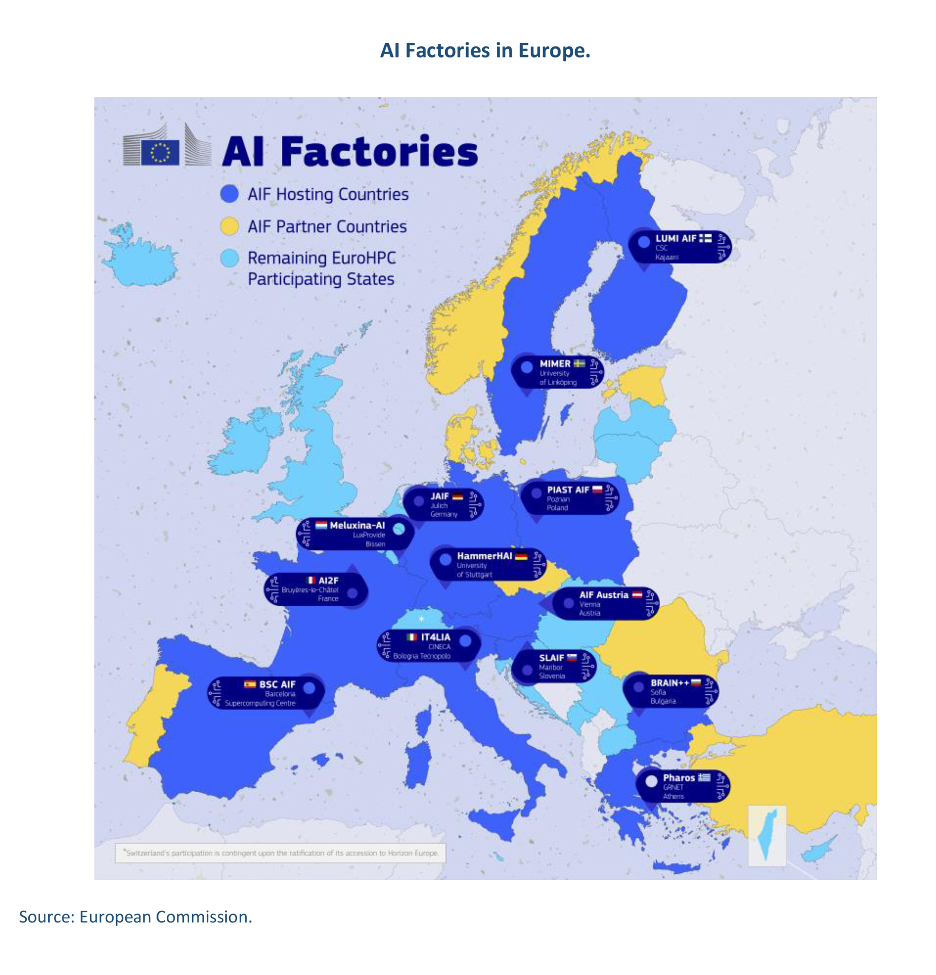 The EC’s proposed plan is based on five pillars. The first concerns the construction of AI “factories”, which are specialised data centres for training artificial intelligence, and, as signalled at the AI Action Summit, five so-called gigafactories, for which around €20 billion is to be allocated. These funds will come from the €200 billion special Invest AI fund that the EC announced in February this year. The second pillar focuses on increasing the availability of data for AI. This is crucial because generative AI models (i.e., those that create something relatively new from existing data, such as images or text, e.g., ChatGPT) are trained on large datasets, so being able to use such databases could make it easier for smaller companies to create AI solutions. Here, however, the plan does not introduce new solutions. It only refers to previously announced projects, including the Data Union Strategy (DUS), which the EU planned for the end of 2025 to strengthen AI innovation by increasing access to high quality, selected data across industries. A public consultation period on the DUS is due to open in the second quarter of 2025.