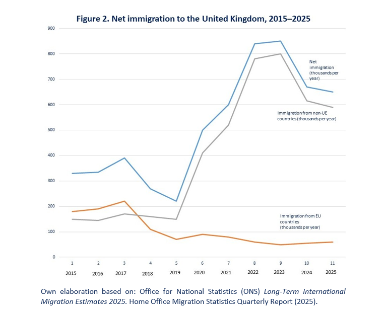 In response to growing public discontent, Rishi Sunak’s Conservative government, in the run-up to the 2024 parliamentary elections, raised the work visa income threshold from £23,000 to £38,700 (effective from 2025) in an attempt to limit the influx of low-skilled immigrants. At the same time, work began on an electronic travel authorisation (ETA) system, equivalent to the EU's EES system, which was intended to strengthen border controls and symbolically confirm the regained sovereignty after Brexit, and was finally introduced between February and April 2025. However, these measures did not resolve the paradox of the British economic model, which is that political pressure to restrict migration clashes with the economic need to maintain it. Immigrants have become indispensable for the functioning of public services and maintaining growth, but at the same time, they remain a source of social tensions that currently co-determine the British political scene.