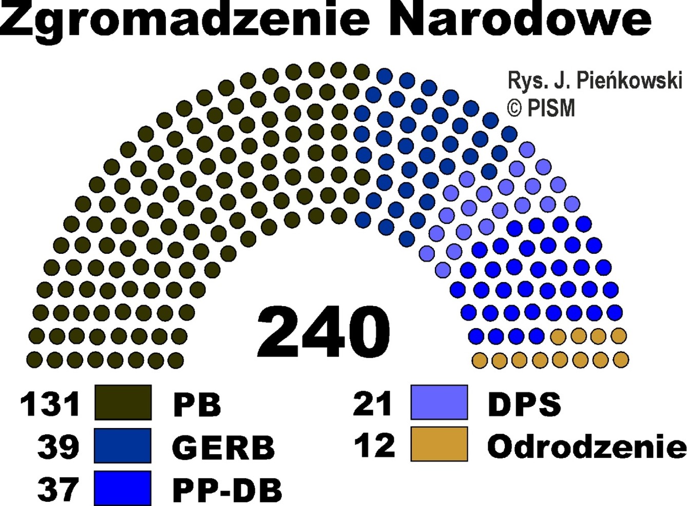 W przedterminowych wyborach, rozpisanych w lutym br. przez prezydent Ilijanę Jotową w następstwie grudniowej dymisji rządu Rosena Żelazkowa, zwyciężyła PB, koalicja powołana w marcu pod patronatem Radewa. Zdobyła ona 43,9% głosów, co zapewni jej 131 mandatów w 240-miejscowym Zgromadzeniu Narodowym. Najsilniejsza dotychczas centroprawicowa partia Obywatele na rzecz Europejskiego Rozwoju Bułgarii (GERB) wieloletniego premiera Bojka Borisowa zdobyła 13,2% głosów, co da jej 39 posłów (o 27 mniej niż w mijającej kadencji). Za nią uplasowała się reformistyczna koalicja Kontynuujemy Zmianę-Demokratyczna Bułgaria (PP-DB), uzyskując12,4% poparcia i 37 mandatów (o 1 więcej). Osłabiony rozłamami Ruch na rzecz Praw i Wolności (DPS), nominalnie reprezentujący interesy tureckiej mniejszości, a faktycznie oligarchy Deljana Peewskiego, zdobył 7% głosów i 21 mandatów (o 8 mniej, a wraz z rozłamową frakcją o 29 mniej). 4-procentowy próg wyborczy nieznacznie przekroczyło prorosyjskie i nacjonalistyczne Odrodzenie – 12 posłów (o 21 mniej). Nie osiągnęły tego zasiadające dotychczas w Zgromadzeniu i mające zbliżony profil ideowy Bułgarska Partia Socjalistyczna (BSP), Wielkość oraz Miecz (Moralność, Jedność Honor), a także rozłamowa frakcja DPS – Sojusz na rzecz Praw i Wolności – oraz populistyczna Są Tacy Ludzie (ITN).