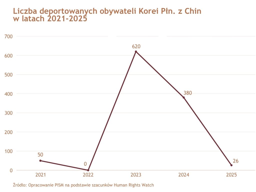 Według Human Rights Watch od 2024 r. Chiny deportowały co najmniej 406 obywateli Korei Płn. Działania ChRL są niezgodne z ich zobowiązaniami międzynarodowymi i odzwierciedlają tragiczną sytuację uciekinierów z KRLD.