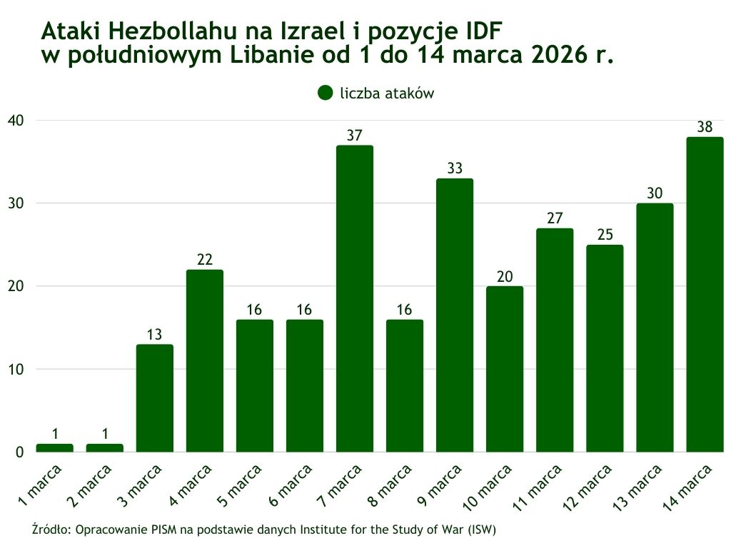 Od marca br. Hezbollah przeprowadził przeciwko Izraelowi ponad 300 ataków rakietowych, dronowych i moździerzowych. Zakres wojskowego zaangażowania Hezbollahu wskazuje, że organizacja ta – mimo strat, jakie poniosła od 2023 r. w wyniku działań sił izraelskich – wciąż dysponuje zdolnościami stanowiącymi poważne zagrożenie dla Izraela. Ataki Hezbollahu są skoordynowane z uderzeniami Iranu, co ma dodatkowo obciążać izraelski system obrony powietrznej. Chociaż IDF przeprowadziły szereg skutecznych ataków na przywódców, wyrzutnie rakiet, zaplecze logistyczne, finansowe i propagandowe Hezbollahu, w celu dogłębnego osłabienia potencjału tej organizacji i utrudnienia jej przyszłego odrodzenia (przy zakładanym odcięciu od wsparcia z Iranu) mogą zdecydować się na przeprowadzenie dużej operacji lądowej. Może na to wskazywać plan m.in. zwiększenia limitu mobilizacji rezerwistów z 280 tys. do 450 tys. żołnierzy. Taka decyzja może doprowadzić do długotrwałego uwikłania się Izraela w operację przeciwpartyzancką z przeciwnikiem dobrze przygotowanym do walk asymetrycznych. Działania wojenne będą miały poważne negatywne konsekwencje społeczne i ekonomiczne. Od marca br. w wyniku ataków izraelskich w Libanie zginęło ponad 800 osób (w tym ponad 100 dzieci), a liczba uchodźców wewnętrznych osiągnęła milion. Włączenie się Hezbollahu do wojny negatywnie wpływa na jego poparcie i determinuje wewnątrzpolityczną dynamikę w Libanie. Militarnemu zaangażowaniu sprzeciwia się m.in. dotychczasowy sojusznik tej organizacji – ruch Amal. Libański rząd liczy z kolei na demilitaryzację Hezbollahu, co jest zbieżne z interesami Izraela, jednak potencjał libańskiej armii jest niewystarczający do samodzielnego rozbrojenia organizacji.