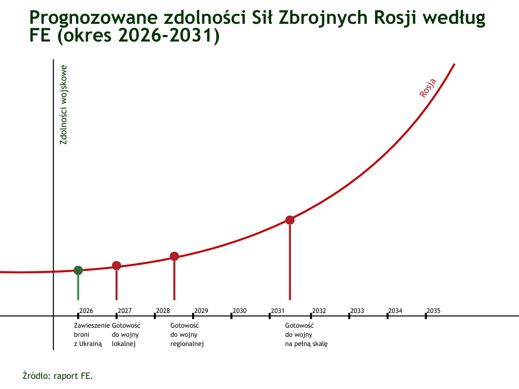 Raport FE podkreśla dążenie Stanów Zjednoczonych do szybkiego zakończenia wojny Rosji z Ukrainą oraz rosnącą niepewność co do roli USA jako gwaranta bezpieczeństwa Europy. Stwierdza też, że widoczna jest nasilona kampania ataków hybrydowych Rosji przeciwko europejskim członkom NATO. W ocenie FE uwikłanie w wojnę z Ukrainą opóźnia rozbudowę i przezbrojenie sił zbrojnych Rosji do poziomu pozwalającego na otwarty konflikt z Sojuszem. Autorzy dokumentu podkreślają, że choć aktualnie nie ma zagrożenia atakiem konwencjonalnym Rosji na Danię, to w razie zamrożenia wojny z Ukrainą możliwe byłoby odbudowanie rosyjskich zdolności do poziomu pozwalającego przeprowadzić przeciwko NATO wojnę regionalną w 2028 r. i wojnę na pełną skalę w 2031 r. Wskazane daty zależą od wielu uwarunkowań, ale ogólny wniosek o intencjach i zdolnościach Rosji jest podzielany przez rządy wielu państw Sojuszu. Większe zainteresowanie duńskich i amerykańskich mediów wywołały jednak oceny intencji USA. Według FE dążenie administracji Donalda Trumpa do zabezpieczenia swoich interesów w Arktyce (element koncentrowania się na Hemisferze Zachodniej) oznacza, że ,,nie da się wykluczyć użycia siły także wobec ich sojuszników”, co nawiązuje do wypowiedzi prezydenta i wiceprezydenta USA o konieczności przejęcia pełnej kontroli nad należącą do Danii Grenlandią. Taki wniosek FE na temat głównego sojusznika Danii sformułowano zapewne jeszcze przed niedawnym opublikowaniem Strategii bezpieczeństwa narodowego USA, której założenia zapowiadają nasilenie się różnic i podziałów w stosunkach transatlantyckich.
