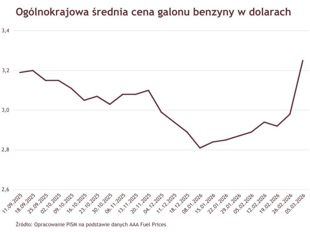 Decyzją prezydenta Donalda Trumpa okręty marynarki USA mają zapewniać bezpieczeństwo żeglugi tankowców przez cieśninę Ormuz, gwarantując ciągłość dostaw ropy. Jak dotąd amerykańskich okrętów na Bliskim Wschodzie jest mniej niż podczas inwazji na Irak w 1991 i 2003 r. Są to dwie grupy bojowe lotniskowców z niszczycielami rakietowymi i okrętami podwodnymi. Fizyczne wzmacnianie bezpieczeństwa żeglugi ma być poszerzone o ubezpieczenia dla armatorów, zapewnianych przez Międzynarodową Korporację Finansowania Rozwoju (federalny bank rozwoju). W ten sposób Stany Zjednoczone chcą przeciwdziałać dalszym wzrostom cen ropy Brent i WTI na globalnych rynkach, przekładających się na ceny paliw, w tym w samych USA. W pierwszych sześciu dniach operacji średnia cena galonu benzyny wzrosła z 3 dol. do 3,25 dol., a w kolejnych tygodniach sięgnąć może nawet 3,5 dol. Ochrona zapowiedziana przez Trumpa najprawdopodobniej nie obejmie gazowców – przerwy w dostawach gazu z Bliskiego Wschodu (głównie Kataru) nie wpłyną negatywnie na USA, które całe zapotrzebowanie pokrywają z własnego wydobycia. Utrudnienia te skutkują już jednak wzrostem cen kontraktów terminowych w Azji i Europie, a zmniejszenie dostaw może napędzić popyt na krótkoterminowe dostawy spotowe LNG od amerykańskich dostawców, zwiększając konkurencję.
