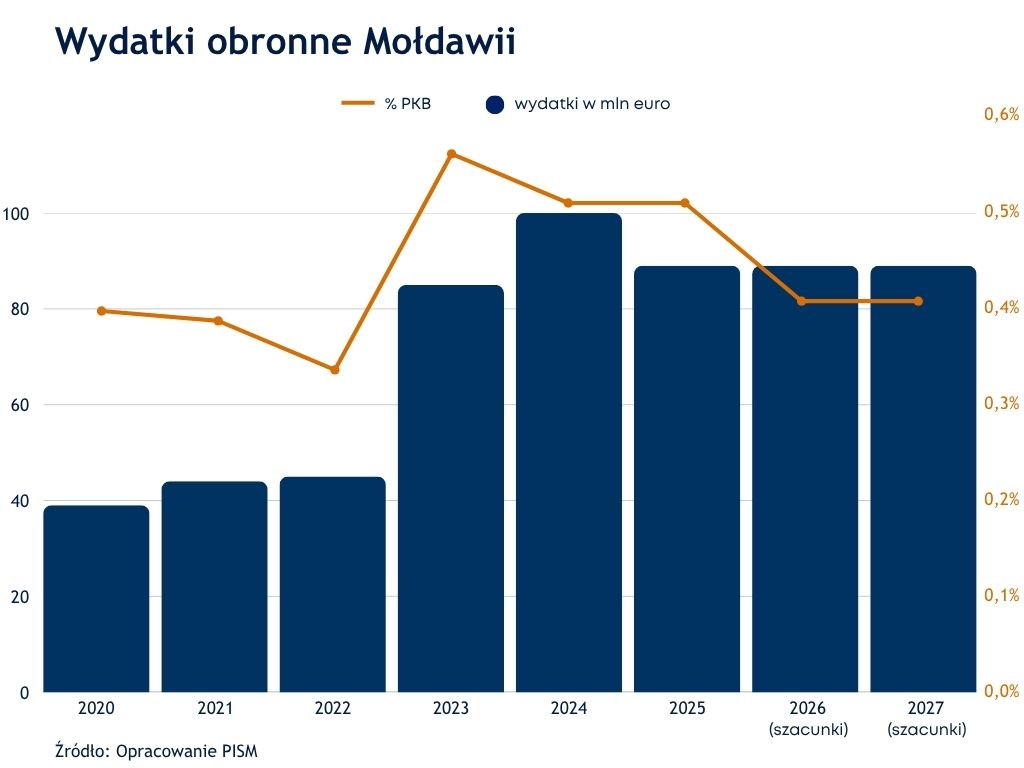 Nowa strategia jest elementem odpowiedzi władz Mołdawii na operacje hybrydowe Rosji i jej pełnoskalową inwazję na Ukrainę. Podstawowym wyzwaniem we wdrażaniu strategii będzie brak powszechnego konsensusu na rzecz obronności. O ile proeuropejska Partia Działania i Solidarności, która ponownie zdobyła samodzielną większość we wrześniowych wyborach parlamentarnych, i faktycznie kierująca tą partią prezydent Maia Sandu obawiają się agresji Rosji w przypadku dotarcia jej wojska do granic Mołdawii, o tyle prorosyjska opozycja zarzuca rządzącym antyrosyjski militaryzm i twierdzi, że wpisana do konstytucji neutralność gwarantuje krajowi bezpieczeństwo. Strukturalnym wyzwaniem dla modernizacji armii – 90% sprzętu jest jeszcze poradziecka – będzie niezdolność mołdawskiej gospodarki do jej sfinansowania. Choć strategia przewiduje wzrost budżetu obronnego do 0,95% PKB dopiero w 2029 r., i przynajmniej do 1% od 2034 r., wciąż będą to znikome kwoty. Obecnie przy poziomie 0,5% PKB w 2025 r. jest to równowartość zaledwie ok. 89 mln euro. Stawia to pod znakiem zapytania plan większego uzawodowienia armii i zwiększenia jej liczebności do 8,5 tys. żołnierzy (obecnie ok. 5,5 tys.; w skład sił zbrojnych wchodzi także ok. 1 tys. karabinierów, w czasie pokoju podległych MSW). Wyklucza to także zakupy zaawansowanego sprzętu, przez co jedyną realną perspektywą unowocześnienia armii pozostaną donacje partnerów z UE i USA. Z punktu widzenia Polski modernizacja sektora obronnego Mołdawii jest pożądana, jednak podejmowane przez nią działania nie są w stanie zapewnić krajowi stabilności i odporności na agresywne działania Rosji.