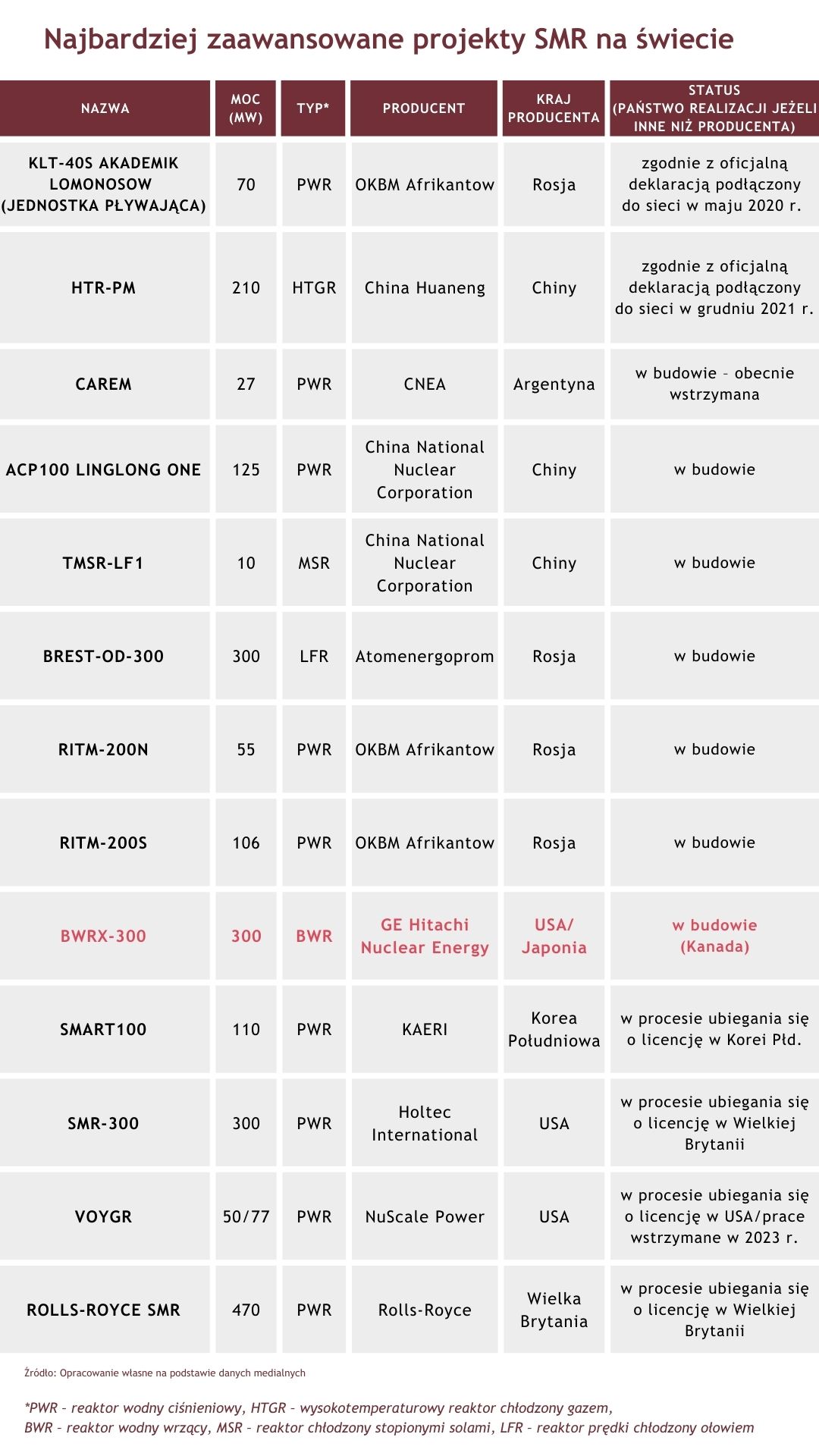 Kanadyjska prowincja Ontario wydała 8 maja zgodę na rozpoczęcie budowy pierwszego komercyjnego małego reaktora modułowego (SMR) BWRX-300. Inwestycję zrealizują japońsko-amerykański GE Hitachi Nuclear Energy i państwowa spółka Ontario Power Generation (OPG), a podłączenie SMR do sieci ma nastąpić do końca 2030 r.
