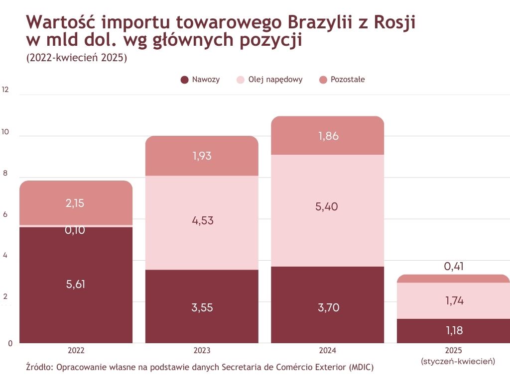 Podróż prezydenta Brazylii nie wywołała takich kontrowersji jak wizyta w Moskwie jego poprzednika Jaira Bolsonaro w połowie lutego 2022 r., czemu sprzyjała m.in. otwartość administracji Donalda Trumpa na współpracę z Rosją. Lula nie uniknął jednak krytyki za udział w uroczystościach w Moskwie u boku wielu autorytarnych przywódców i za legitymizowanie Putina. W odpowiedzi podkreślał, że jego decyzja o przyjeździe była dowodem przywiązania Brazylii do multilateralizmu. Zwracał też uwagę na znaczenie rozwoju współpracy handlowej, za czym przemawia dynamiczny wzrost obrotów, ale czemu towarzyszy pogłębiający się deficyt Brazylii – jej eksport do Rosji w 2024 r. był wart 1,45 mld dol., a import prawie 11 mld (w większości oleju napędowego i nawozów). Choć Lula deklarował, że namawiał Putina do rozejmu i rozmów pokojowych z Ukrainą, to wątpliwe jest, by Brazylia miała jakikolwiek wpływ na politykę rosyjskich władz. Decyzja o przyjeździe do Moskwy umocni reputację brazylijskiego prezydenta wśród innych państw rozwijających się, w tym zwłaszcza w gronie BRICS+, w której Brazylia sprawuje w tym roku prezydencję. Zaszkodzi jednak promowanemu przez rząd Luli wizerunkowi tego państwa jako bezstronnego mediatora, który pomoże doprowadzić do pokoju na Ukrainie.