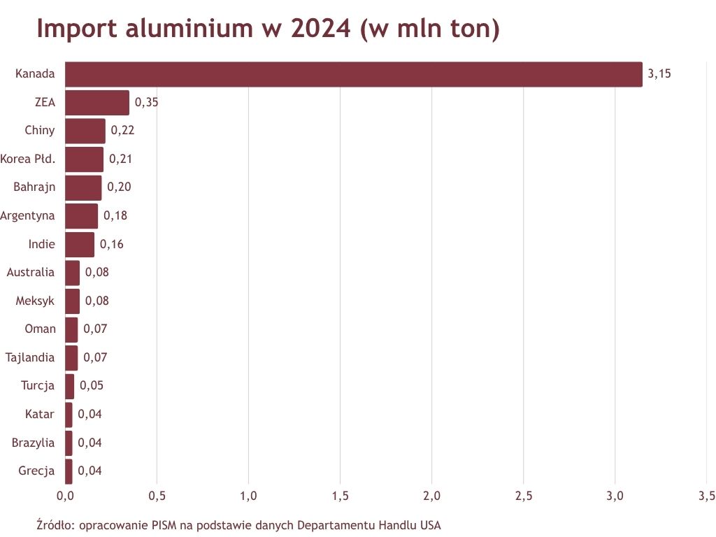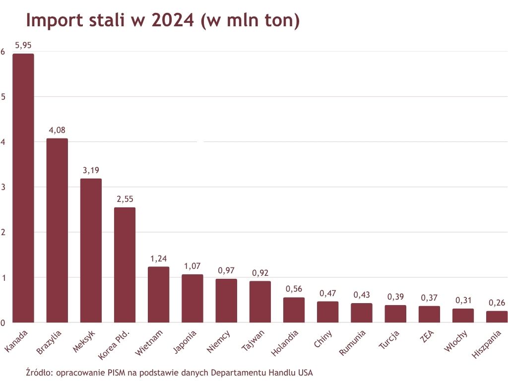 Podniesienie ceł na stal i aluminium jest pierwszą eskalacją w wojnach celnych prowadzonych przez administrację Trumpa od momentu zakwestionowania przez federalne sądy podstaw do nałożenia przez USA tzw. ceł wzajemnych. Decyzja ta jeszcze bardziej skomplikuje relacje z najważniejszymi partnerami politycznymi i gospodarczymi, m.in. Kanadą, Meksykiem, Koreą Płd., Japonią czy Niemcami. Choć władze USA tłumaczą cła potrzebą wzmocnienia konkurencyjności własnego sektora metalurgicznego poprzez zwalczanie taniej sprzedaży nadwyżek produkcyjnych obu metali przez inne państwa (co jest faktem szczególnie w przypadku importu z Chin), to zmniejszenie zależności od importu jest bardziej możliwe w przypadku stali niż aluminium – w 2024 r. 13% stali wykorzystanej do produkcji w USA pochodziło z importu, aluminium zaś 47%. Wyższe cła zwiększają ryzyko podniesienia cen produktów wykorzystujących te metale, co szczególnie dotyczy branży motoryzacyjnej, w której obowiązują osobne 25-procentowe cła na importowane samochody. Z kolei szczegóły nowej propozycji przejęcia U.S. Steel przez Japończyków nie są znane (wcześniej sprzeciwiali się temu Joe Biden oraz sam Trump), ale już zapowiedź prezydenta, nawiązująca do potrzeby odnowienia zdolności produkcyjnych w stanach tzw. pasa rdzy, wywołała pozytywną reakcję na amerykańskiej giełdzie.