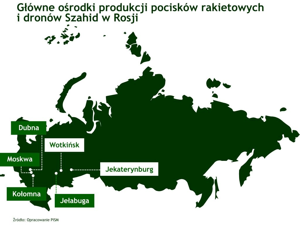 Chociaż od 2022 r. Rosja straciła 30% floty swoich bombowców przenoszących konwencjonalne pociski manewrujące Ch-101 i Ch-32, zachowuje zdolność do eskalacji. Może wykorzystywać do tego pozostałe maszyny i rezerwy pocisków manewrujących szacowane na 700 sztuk. Produkcja ok. 80 pocisków miesięcznie w zakładach Raduga w Dubnie pozwoli na uzupełnienie potencjału po nasileniu bombardowań. Można oczekiwać też zwiększonych ataków Rosji pociskami rodziny Kalibr z platform morskich lub lądowych, a produkowanych na poziomie 45–60 sztuk miesięcznie (Nowator w Jekaterynburgu). Są one łatwiejsze do przechwycenia, dlatego Rosja będzie okresowo nasilać ataki pociskami balistycznymi Iskander i Kindżał. Ich produkcja (KBM w Kołomnie) sięga 85 sztuk miesięcznie, a jej uzupełnieniem jest import (kilkunastu sztuk miesięcznie) z Korei Płn. i Iranu. Rozbudowa kilku zakładów produkcji paliw rakietowych w Rosji może wskazywać, że produkcja rakiet będzie rosła. Jednak obrona Ukrainy będzie nadal przeciążana przez Rosję licencyjnymi i irańskimi dronami Szahed-136 lub jeszcze tańszymi – Harpia i Gerbera. Ponieważ firmy kompleksu rakietowego Rosji są lepiej chronione przed atakami Ukrainy, jej celem będzie przede wszystkim zakład Jełabuga w Tatarstanie, produkujący 3 tys. Szahidów miesięcznie. Priorytetem dla Europy powinno pozostać wsparcie Ukrainy w systemach defensywnych i ofensywnych oraz zacieśnianie sankcji za dostawy materiałów podwójnego zastosowania do Rosji.