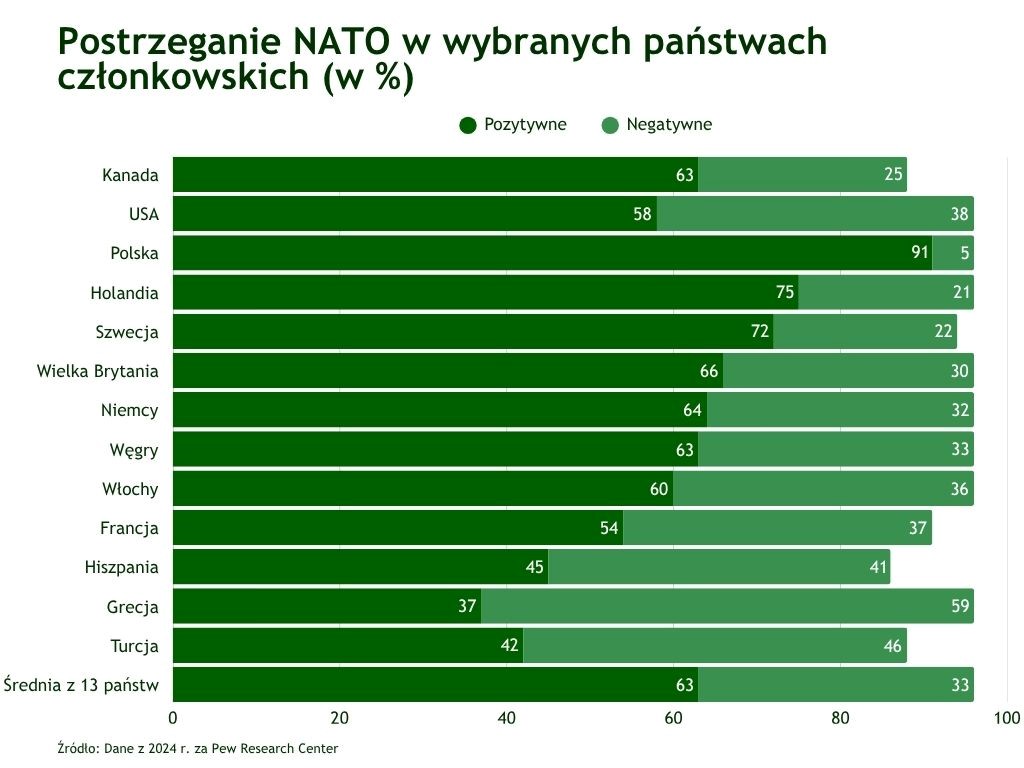 Uzgodnienie nowego poziomu wydatków jest głównym celem spotkania przywódców i szefów rządów NATO 24–25 czerwca w Hadze. Sojusznicy zadeklarują zwiększanie wydatków do poziomu 5% do 2035 r. Cel ten został podzielony na dwa obszary – bezpośrednie wydatki na rozwój potencjału militarnego na poziomie 3,5% i wydatki na infrastrukturę na poziomie 1,5%. Ustalenie takiego poziomu odzwierciedla wcześniejsze żądania prezydenta Trumpa, który domagał się od sojuszników wydatków na poziomie 5%, chociaż USA wydają 3,4%. Nowy cel nie jest powiązany z planowanymi inwestycjami, ale nadrzędnym celem sojuszników jest utrzymanie zaangażowania USA w bezpieczeństwo Europy i uzyskanie niezbędnego czasu na wzmocnienie potencjału przez państwa europejskie. Hiszpania dopiero w tym roku zwiększy wydatki do poziomu 2,1%. Jest to znaczący wzrost, bo w zeszłym roku wydawała tylko ok. 1,3%. Sojusz będzie mógł argumentować, że wszystkie państwa (chociaż z rocznym opóźnieniem) osiągnęły podstawowy cel, jakim było przeznaczanie co najmniej 2% PKB na obronność. W deklaracji ze szczytu ma się znaleźć sformułowanie, że „sojusznicy zobowiązują się do zwiększenia wydatków do 5%”, które nie wskazuje, że zobowiązali się do tego wszyscy członkowie Sojuszu, ale pozwala na zachowanie pozorów jedności. Na podejście socjalistycznych władz Hiszpanii do NATO wpływa kilka czynników. Ich priorytetem jest ochrona państwa socjalnego, nawet za cenę podważania spójności politycznej Sojuszu. Chociaż Rosja próbowała podsycać tendencje separatystyczne Katalonii, ze względu na położenie geograficzne Hiszpania nie odczuwa zagrożenia militarnego ze strony rosyjskiej. Należy też do państw, w których wysoki odsetek społeczeństwa (41%) negatywnie postrzega NATO, a także ma niechętny stosunek do Stanów Zjednoczonych. Niechęć ta jest związana m.in. z dawnym poparciem USA dla dyktatury Francisco Franco.