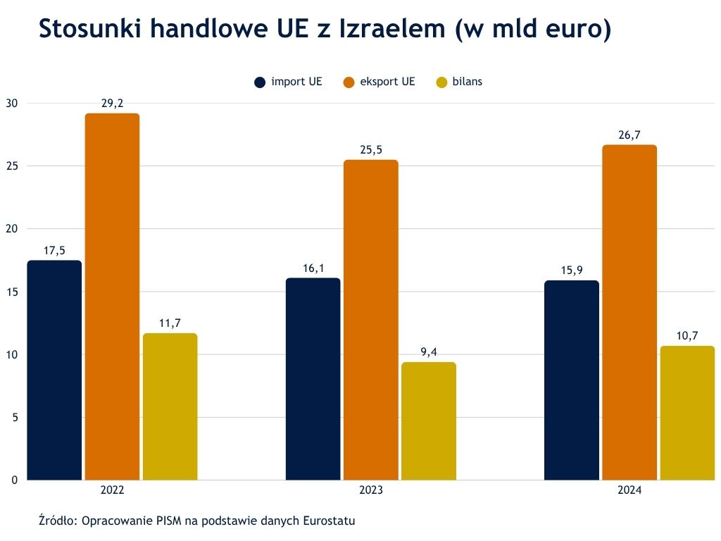 Kroki podejmowane przez instytucje UE są efektem narastającej presji ze strony części państw członkowskich oraz europejskiej opinii publicznej na rzecz zaostrzenia unijnego stanowiska w odpowiedzi na skalę katastrofy humanitarnej w Strefie Gazy i represji wobec Palestyńczyków dokonywanych przez Izrael. Dodatkowy element stanowi przegląd Umowy o stowarzyszeniu UE–Izrael, który wykazał, że strona izraelska narusza jej postanowienia w zakresie przestrzegania praw człowieka. Brak większości niezbędnej do wdrożenia sankcji to efekt m.in. postawy Niemiec i Włoch, które liczą, że sama groźba ich wprowadzenia może wystarczyć do wywarcia presji na Izrael na rzecz poprawy sytuacji w Strefie Gazy. Niemożność realizacji swoich postulatów na poziomie unijnym będzie zachęcać aktywniejsze państwa członkowskie do wdrażania na szczeblu dwustronnym działań wymierzonych w Izrael, na co zdecydowały się m.in. Słowenia i Holandia.
