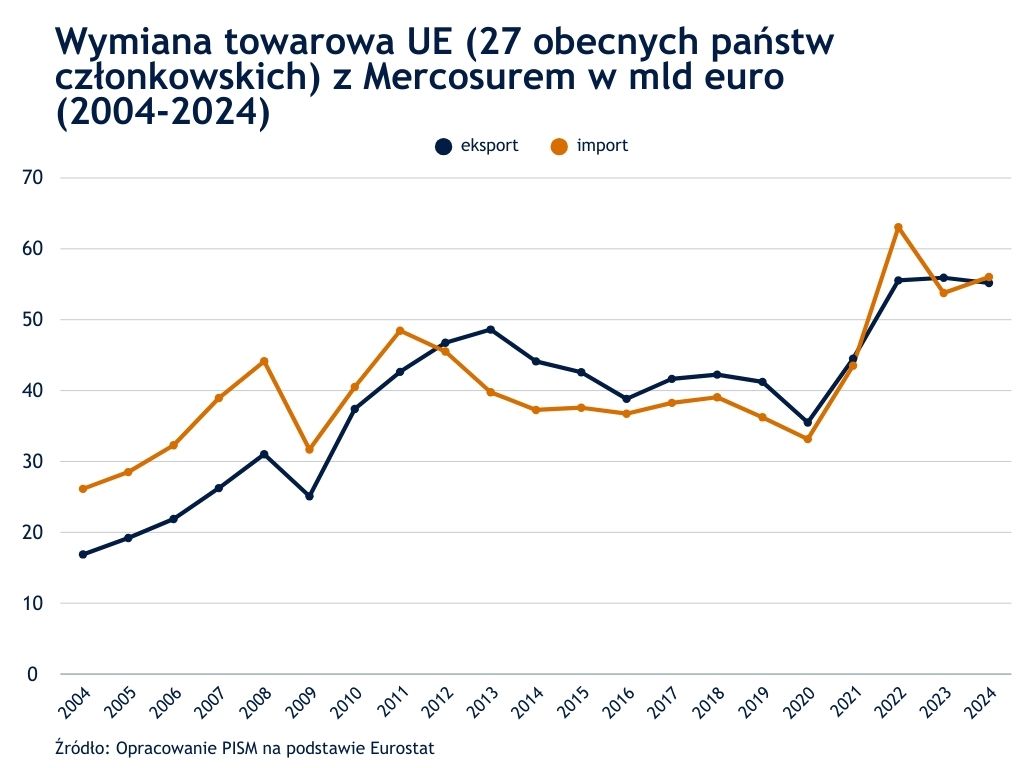 Narastający sprzeciw unijnych państw o silnych sektorach rolno-spożywczych przeciwko porozumieniu o partnerstwie z Mercosurem – wynegocjowanemu w grudniu ub.r. po prawie ćwierć wieku od rozpoczęcia rozmów – nie przeszkodził Komisji Europejskiej w podjęciu decyzji o zainicjowaniu ratyfikacji dokumentu. Zgodnie z przewidywaniami wydzieliła ona część handlową umowy (pozostałe to dialog polityczny i współpraca sektorowa) na podstawie kompetencji wyłącznych, więc do wyrażenia zgody wystarczy większość kwalifikowana w Radzie i zwykła w PE. Nie jest pewne, czy rządy Francji i Polski zdołają stworzyć koalicję, która mogłaby zablokować ten proces – według mediów Komisja próbuje wykluczyć taki scenariusz, m.in. oferując jakiś wewnętrzny mechanizm ochronny lub kompensacyjny. Przekonuje do umowy, kładąc nacisk na korzyści gospodarcze – głównym rezultatem ma być utworzenie największej na świecie strefy wolnego handlu (ponad 700 mln konsumentów). Jednak na determinację KE w przeforsowaniu porozumienia w dużym stopniu wpływa kontekst polityczny. Porozumienie z Mercosurem ma być odpowiedzią m.in. na narastający protekcjonizm USA oraz umacniającą się pozycję gospodarczą Chin w Ameryce Płd.