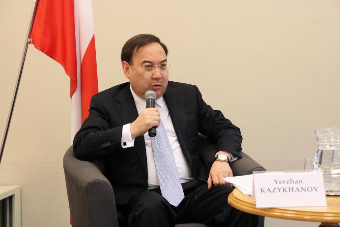 22 czerwca 2012 r. Polski Instytut Spraw Międzynarodowych razem z Ambasadą Republiki Kazachstanu w Warszawie gościł ministra spraw zagranicznych Kazachstanu Yerzhana Kazykhanova, który wystąpił z wykładem pt. „Priorities of Kazakhstan's Foreign Policy”. Spotkanie miało charakter zamknięty, przeznaczone dla bardzo wąskiego kręgu uczestników, związanych przede wszystkim z administracją państwową. Moderatorem spotkania był Marcin Zaborowski, dyrektor PISM.
