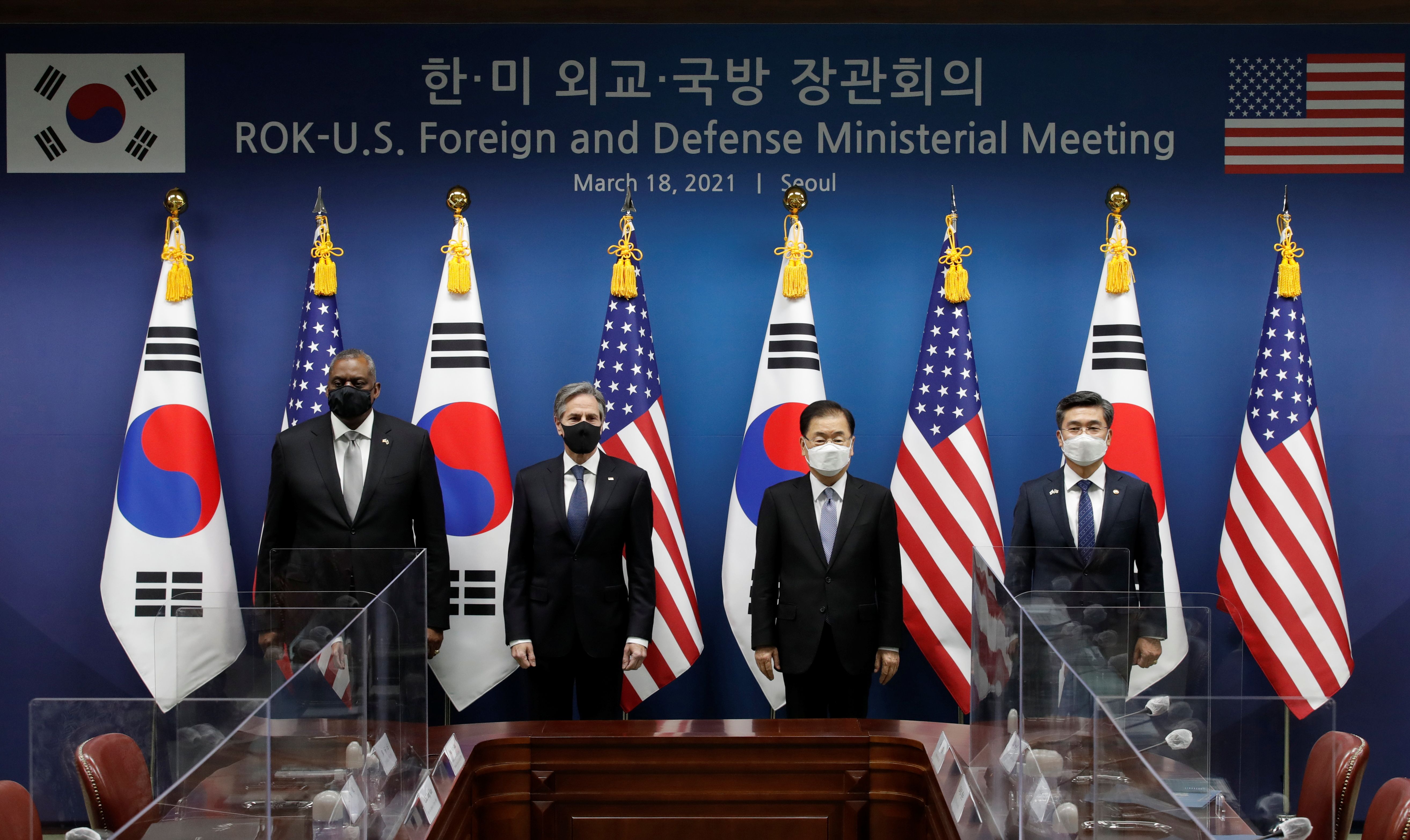 The U.S. secretaries and South Korean Minister of Foreign Affairs Chung Eui-yong and Defence Minister Suh Wook reaffirmed that the U.S.-South Korea alliance serves as the linchpin of peace, security, and prosperity on the Korean Peninsula and the Indo-Pacific. The alliance was stabilised thanks to the signing of a multi-year agreement (extended to 2025) on the costs of stationing U.S. forces in South Korea. The parties indicated that the challenges related to North Korea’s nuclear and missile programmes—together, a priority for the alliance—require allied coordination and implementation of relevant United Nations Security Council resolutions. They opposed actions destabilising the rules-based international order, but did not mention China. South Korea noted that its New Southern Policy is consistent with the American Indo-Pacific strategy, which is to facilitate cooperation in the region.