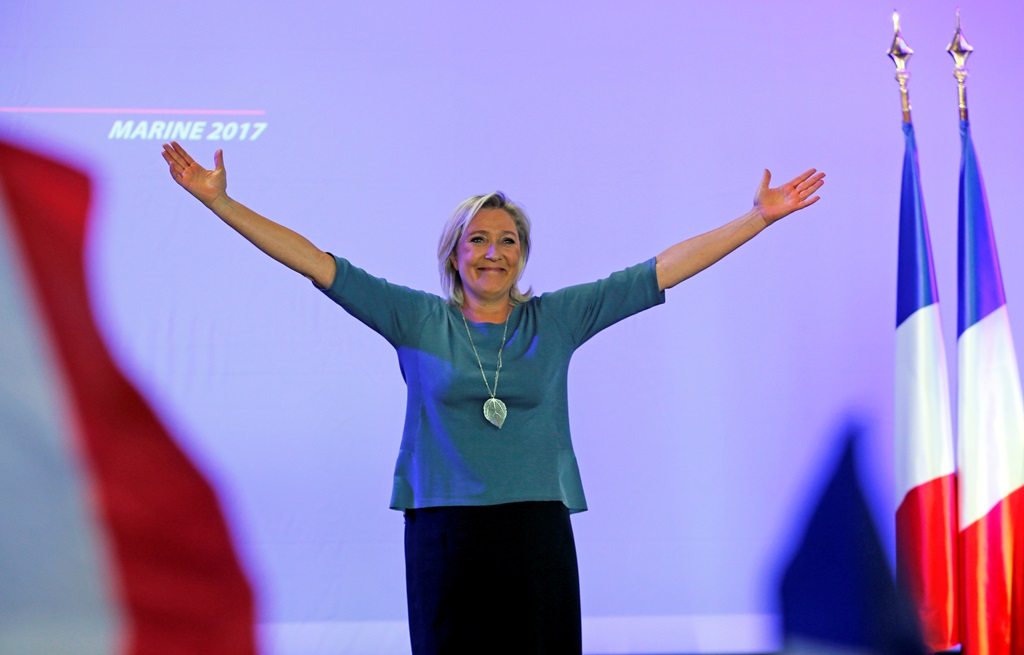 Marine Le Pen cieszy się stałym i wysokim poparciem społecznym – 24–26%. Według większości sondaży przejdzie ona do drugiej tury wyborów. Jednak w drugiej turze przewidywane 33-procentowe poparcie[1] na pewno nie wystarczy do pokonania żadnego z potencjalnych kontrkandydatów – ani François Fillona, nowego przywódcy Republikanów, ani kandydata socjalistów, którym prawdopodobnie będzie Manuel Valls. Na niekorzyść liderki FN działają jej skrajnie poglądy i radykalizm języka, w którym przeciwnicy polityczni są „skorumpowanymi elitami”, ona sama zaś występuje „w imieniu ludu” i „w obronie demokracji”. Dlatego duża część francuskiego społeczeństwa uważa, że Le Pen nie powinna objąć najwyższego urzędu w państwie.