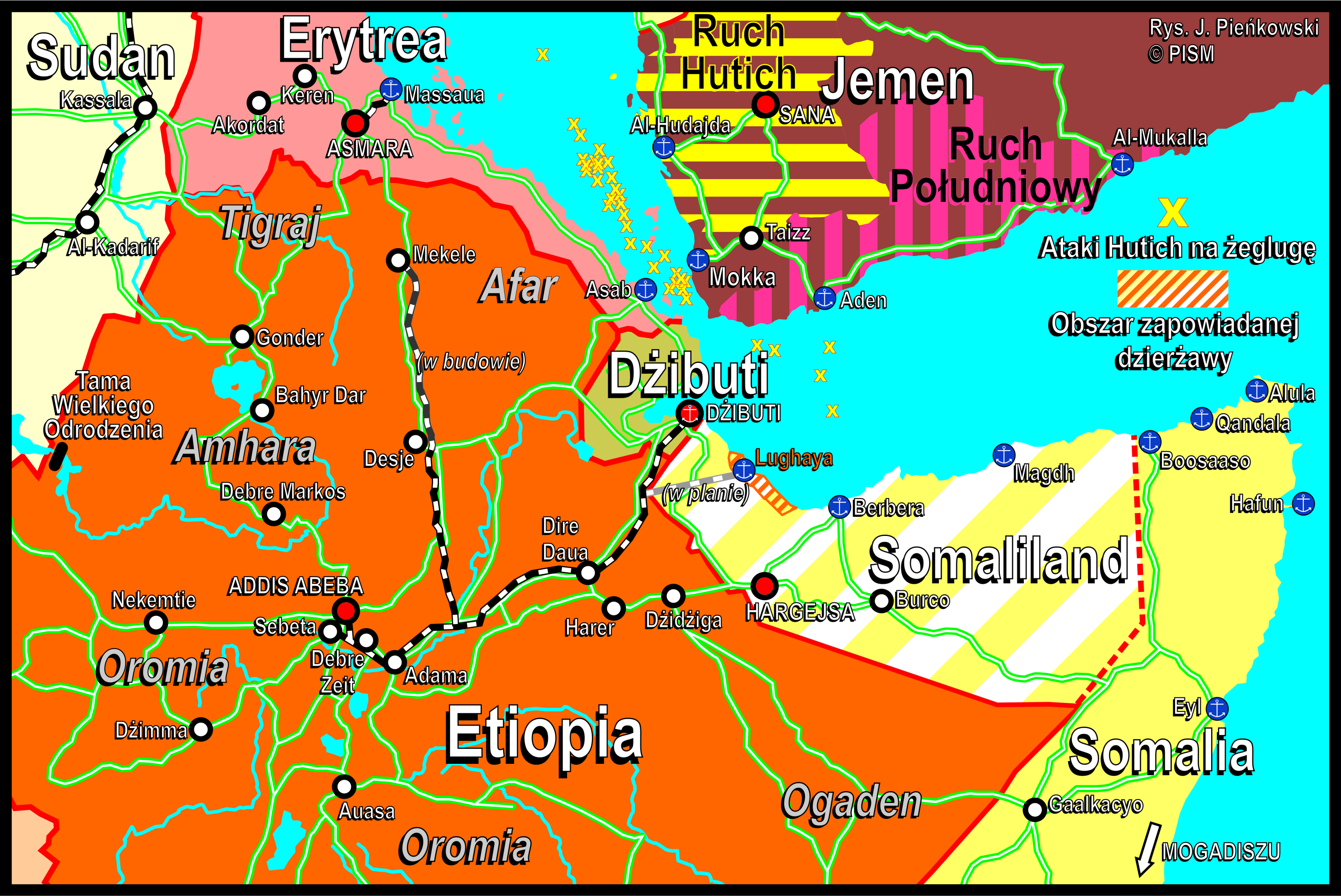 W obliczu ataków jemeńskich Huti na statki korzystające ze szlaku morskiego przez cieśninę Bab al‑Mandab i Morze Czerwone kwestia kontroli wybrzeża na tym wrażliwym odcinku zyskuje na znaczeniu. Możliwe dołączenie Etiopii, państwa zależnego od wsparcia z ZEA, do grupy państw wpływających na kwestie bezpieczeństwa żeglugi osłabia dotychczasowe saudyjskie działania integracyjne w regionie, zwłaszcza utworzoną pod patronatem Saudów w 2020 r. Radę Morza Czerwonego z udziałem ośmiu państw regionu, ale pomijającą ZEA i Etiopię.