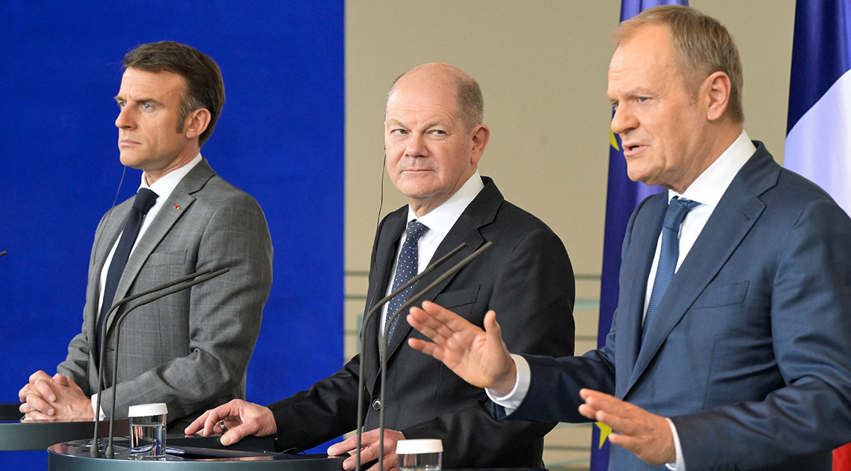 Nadzwyczajny szczyt przywódców Trójkąta Weimarskiego został zwołany po wspólnej wizycie państwowej prezydenta Andrzeja Dudy i premiera Donalda Tuska w Waszyngtonie. Tuż przed szczytem odbyło się spotkanie prezydenta Macrona z kanclerzem Scholzem poświęcone ocenie stanu relacji francusko-niemieckich. Rozmowy przywódców Polski, Francji i Niemiec miały potwierdzić zbieżność stanowisk w sprawie dalszych działań związanych z wojną na Ukrainie, przyspieszyć realizację zapowiadanych inicjatyw, m.in. zwiększenia dostaw amunicji na Ukrainę, i przyczynić się do złagodzenia napięć między Macronem i Scholzem, które nabrały na sile po zorganizowanej 26 lutego br. w Paryżu konferencji w sprawie wsparcia dla Ukrainy. Niemcy jednoznacznie negatywnie odniosły się do słów Macrona o niewykluczaniu możliwości wysłania jednostek wojskowych z państw europejskich na Ukrainę, obawiając się eskalacji konfliktu. Niemcy są krytykowane przez sojuszników za odmowę dostarczenia Ukrainie rakiet dalekiego zasięgu Taurus, z kolei Scholz podkreśla, że są jednocześnie największym europejskim darczyńcą pomocy finansowej i wojskowej dla Ukrainy, której wartość znacząco przewyższa dotychczasowy wkład Francji.