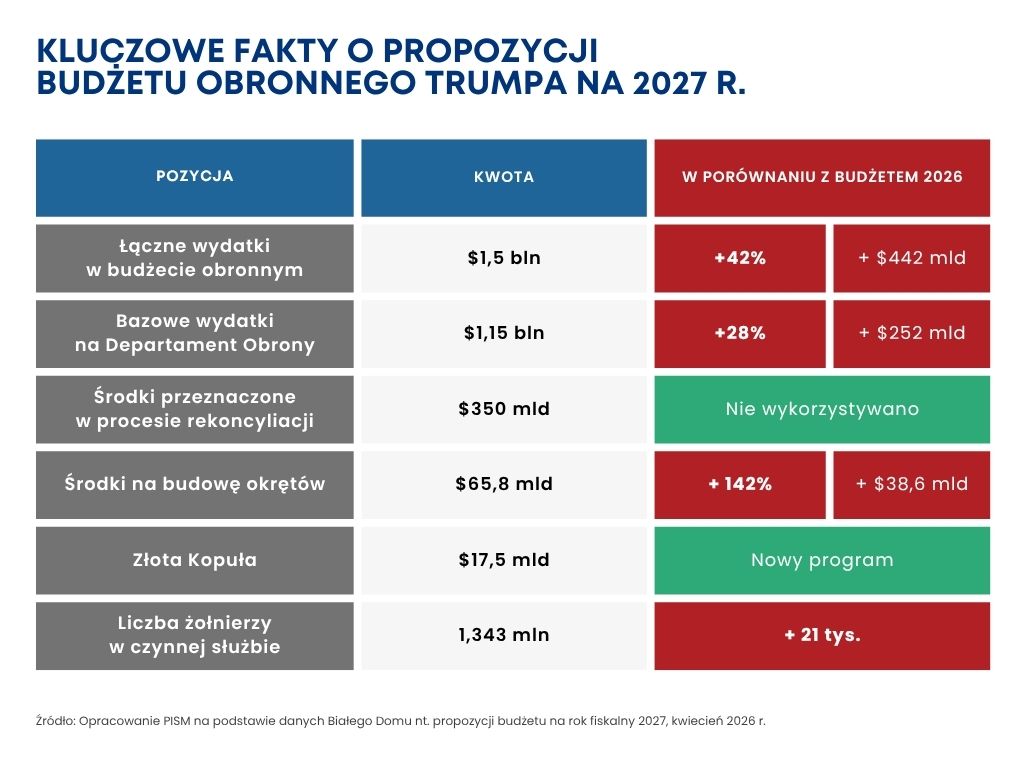 W rekordowo wysokiej propozycji budżetu obronnego (wzrost o 42%) odzwierciedlone zostały priorytety administracji Trumpa dotyczące zwiększonej produkcji okrętów i nowych zdolności kosmicznych.