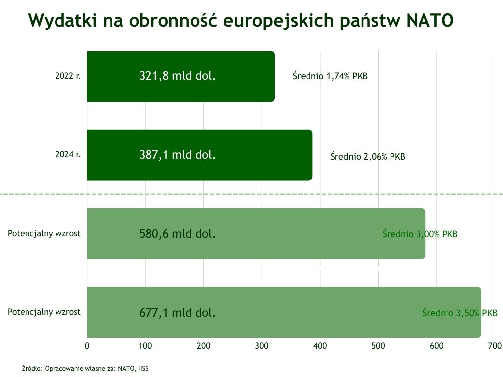 Na szczycie NATO w Hadze (24–25 czerwca br.) sojusznicy zatwierdzili decyzję o zwiększeniu do 2035 r. wydatków na obronność do 5% PKB, z czego 3,5% ma przypadać na wydatki na sprzęt i uzbrojenie, a 1,5% na inwestycje związane z obronnością, takie jak infrastruktura. Decyzje Sojuszu budzą niepokój rosyjskich władz.