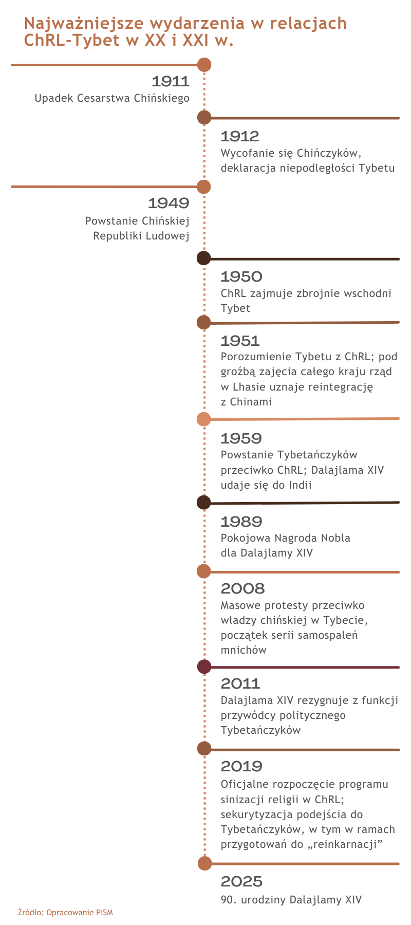 W ocenie Chin działania 90-letniego Dalajlamy XIV są problemem z punktu widzenia stabilizacji sytuacji społecznej na terenach ChRL zamieszkanych przez Tybetańczyków. Istnienie w Indiach rządu na uchodźstwie i wsparcia dla Dalajlamy to ważny punkt sporny w relacjach z tym państwem. Zaangażowanie indyjskie, ale również USA w sprawy Tybetańczyków postrzegane jest przez władze ChRL jako ingerencja w jej sprawy wewnętrzne. Dlatego – poza inwigilacją i represjami wobec mnichów w samym Tybecie – starają się one również kontrolować proces reinkarnacji, do której według wierzeń buddyjskich dojdzie po śmierci obecnego przywódcy religijnego. Podkreślają wymóg wskazania następnego dalajlamy tylko na terenie ChRL jako sposób na uniknięcie ingerencji „sił z zewnątrz”, a także konieczność jego akceptacji przez Chiny przed objęciem funkcji. W swoim oświadczeniu z 2 lipca br. Dalajlama XIV odrzucił te wymogi, wskazując, aby poszukiwania jego „nowego wcielenia” prowadzić poza obszarem Chin.