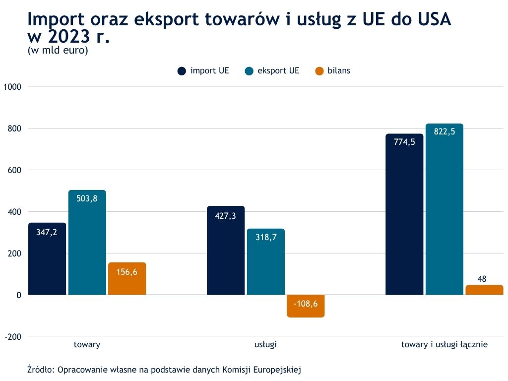 Umowa zwiększa przewidywalność i stabilność w transatlantyckich relacjach gospodarczych. Będzie jednak kosztowna dla UE, gdyż przewiduje cła w wysokości 15% na większość towarów eksportowanych do USA, w tym samochody i ich części (na początku br. średnia stawka celna na produkty z Unii wynosiła ok. 1,5%). Zmniejszy to konkurencyjność firm unijnych na rynku amerykańskim m.in. względem przedsiębiorstw z państw objętych niższymi cłami i produkujących w Stanach Zjednoczonych. Podmioty z UE mają też zwiększyć import surowców energetycznych i broni oraz inwestycje w USA. Treść umowy (jej szczegóły są nadal negocjowane) można uznać za względny sukces administracji Trumpa. UE nie wykorzystała środków nacisku, w tym ograniczenia dostępu do jednolitego rynku, nie tylko ze względu na koszty ekonomiczne eskalacji sporów, ale też znaczenie USA dla bezpieczeństwa europejskiego. Zawiesiła jednak na pół roku wprowadzenie ceł odwetowych na import ze Stanów Zjednoczonych wart ponad 90 mld euro, co może być wykorzystane w przypadku braku realizacji umowy. Nowe warunki handlu z USA mogą skłonić część firm z UE do dywersyfikacji eksportu i inwestowania w tym państwie, a KE do intensyfikacji rozmów nt. umów handlowych. Uzgodnienia dają szansę na bliższe współdziałanie UE i USA w obliczu wspólnych wyzwań, w tym polityki gospodarczej Chin oraz rosyjskiej agresji na Ukrainę.