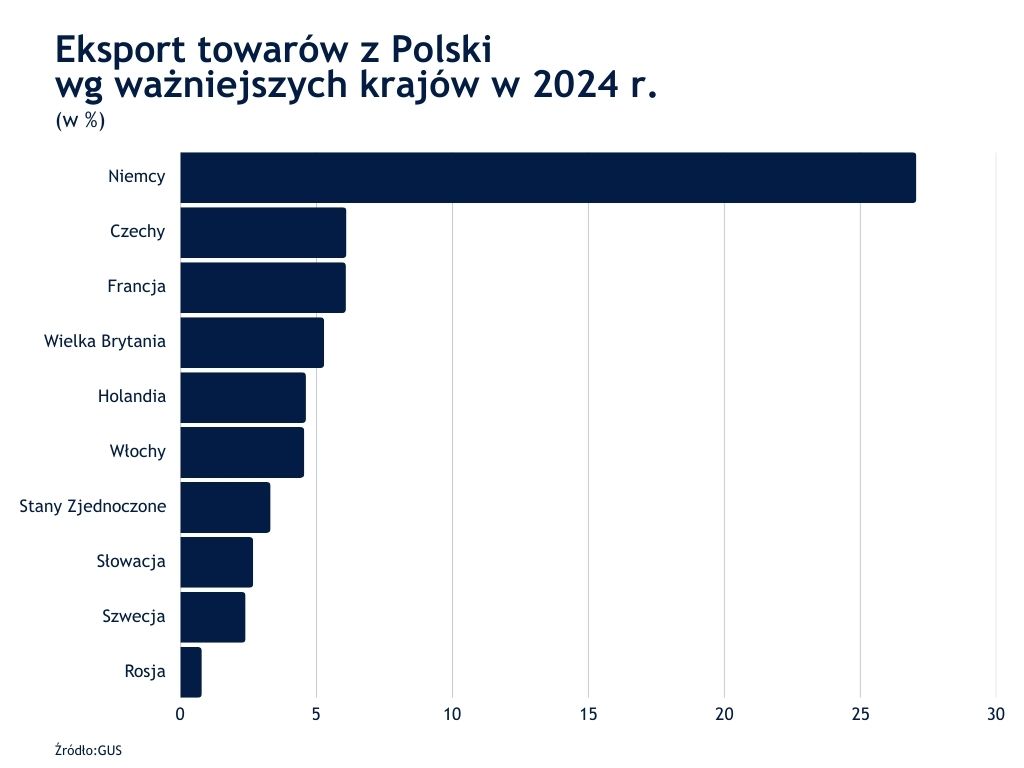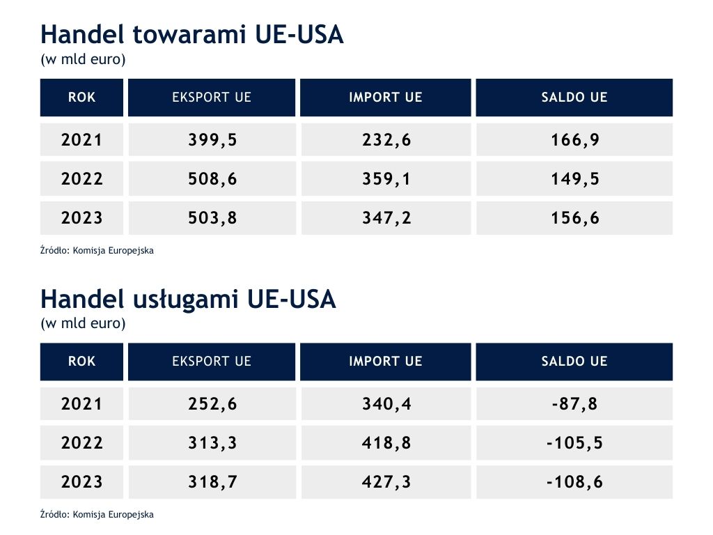 Zamiar obłożenia przez USA towarów z UE 20-procentowymi cłami zmniejszyłby opłacalność nie tylko polskiego bezpośredniego eksportu do tego państwa o wartości 50 mld zł rocznie, ale także eksportu pośredniego, wynikającego z udziału w łańcuchach dostaw producentów z innych państw członkowskich UE.