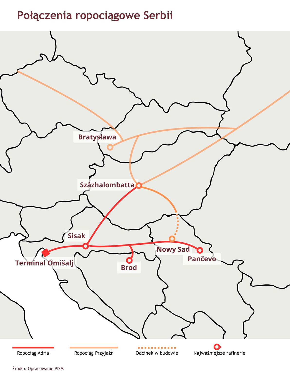 W styczniu OFAC (Biuro ds. Kontroli Aktywów Zagranicznych Departamentu Skarbu) nałożył sankcje na NIS (Naftna Industrija Srbije), ale do października Serbii udawało się co miesiąc uzyskiwać od nich zwolnienie. Miało to umożliwić władzom wymuszenie odsprzedaży akcji na Gazprom Niefcie – większościowym udziałowcu. Tak się jednak nie stało, w wyniku czego od 8 października zaczęły obowiązywać restrykcje, które blokują współpracę NIS z innymi podmiotami, np. krajowymi i zagranicznymi bankami. W ich efekcie chorwacki JANAF – operator ropociągu Adria dostarczającego ropę do Serbii (ponad 85%) – od 15 października wstrzymał dostawy. Władze Serbii zapowiedziały, że zapasy paliwa starczą do końca br., a rafineria w Pančevie utrzyma produkcję do końca miesiąca. Jednocześnie Serbia zintensyfikowała rozmowy ze stroną rosyjską o odsprzedaży udziałów w NIS, a z węgierskim koncernem MOL – o zwiększeniu dostaw z Węgier. Z kolei Rosja miała proponować sprzedaż aktywów Amerykanom. Decyzja OFAC wskazuje na determinację administracji USA do zakończenia obecności energetycznej Rosji w Europie, a wybór Serbii (nienależącej do UE i NATO) stanowi też sygnał dla Węgier i Słowacji, wciąż importujących rosyjską ropę i gaz. To również kolejny ruch świadczący o zaostrzaniu polityki Trumpa wobec Rosji, która nie odpowiedziała na jego pokojowe inicjatywy.