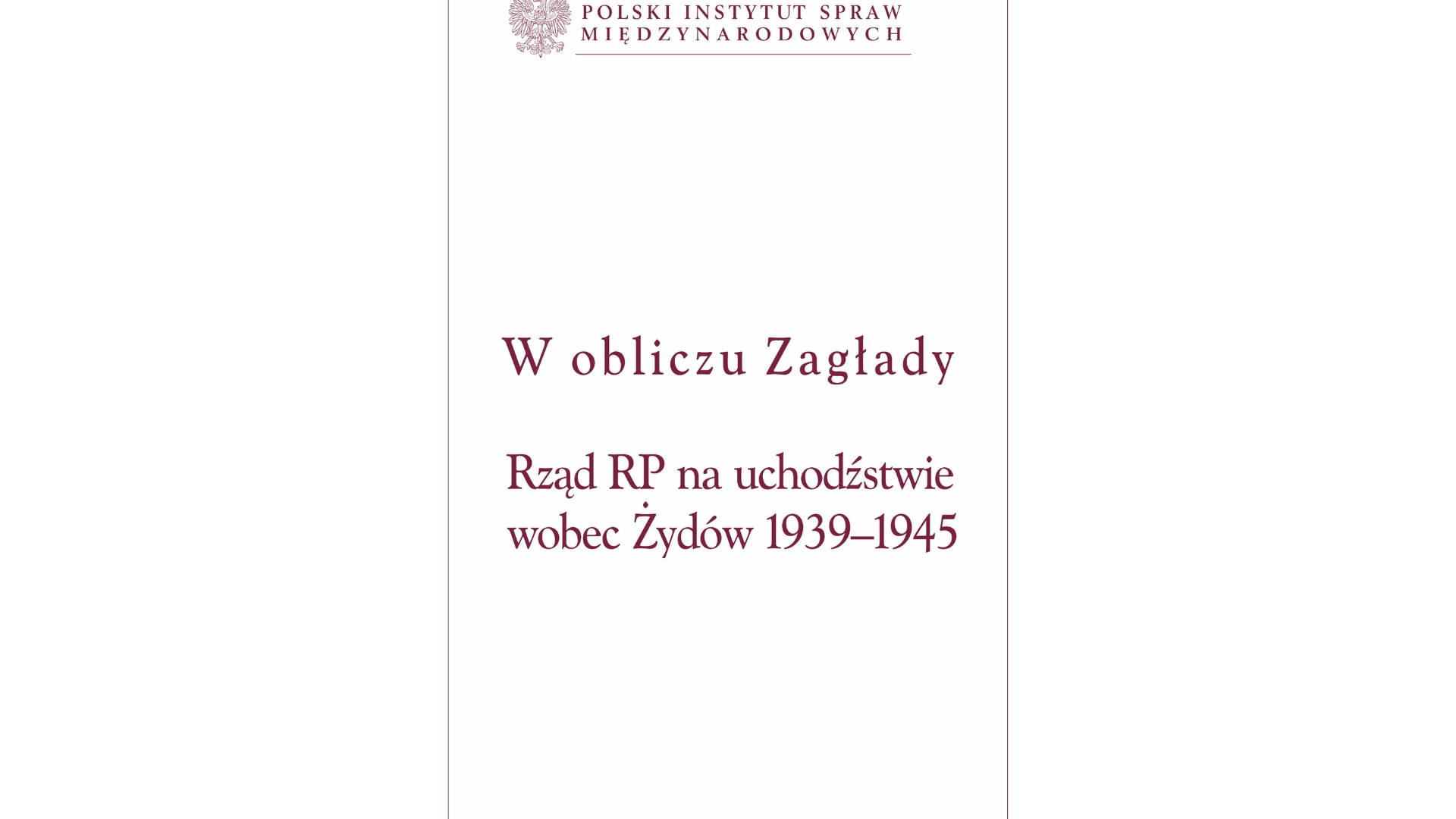 Tom W obliczu Zagłady. Rząd RP na uchodźstwie wobec Żydów 1939-1945 jest publikacją towarzyszącą serii wydawniczej Polskie Dokumenty Dyplomatyczne. Zawiera on 554 archiwalne dokumenty (jak i wiele innych cytowanych w przypisach), które ilustrują działania polskiego rządu na uchodźstwie wobec ludności żydowskiej w czasie drugiej wojny światowej.