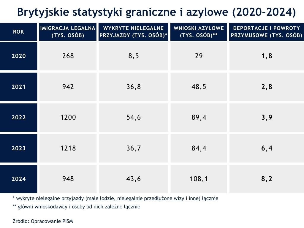 Plan zakłada czasowy status uchodźcy z przeglądem co 2,5 roku, wydłużenie okresu oczekiwania na prawo do stałego pobytu z 5 do 20 lat i apelację tylko w jednej instancji. Rozszerzone mają zostać deportacje osób nielegalnie przekraczających granicę. Środki na utrzymanie azylantów mają pochodzić m.in. z konfiskaty ich wartościowych przedmiotów, a dostęp do świadczeń ma być powiązany z pracą. Ograniczona zostanie liczba wiz dla państw odmawiających readmisji (np. Angoli). Plan odpowiada na rekordową skalę nielegalnych przepraw przez kanał La Manche, wzmacniającą poparcie dla Partii Reformy. Celem jest zmniejszenie atrakcyjności Wielkiej Brytanii dla migrantów chcących uregulować swój pobyt poprzez złożenie wniosku azylowego na granicy, przy jednoczesnym utrzymaniu bezpiecznych i legalnych dróg azylowych (np. w oparciu o umowę azylową z Francją). Choć rząd deklaruje utrzymanie EKPC, chce ustawowo zawęzić interpretację jej art. 3 i 8, co może wywołać spór z Europejskim Trybunałem Praw Człowieka. Ponadto Umowa o handlu i współpracy z 2020 r. uzależnia pogłębioną współpracę policyjno-sądową Wielkiej Brytanii z UE od przestrzegania EKPC.